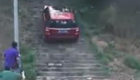 路虎强行"爬山"碾碎石阶