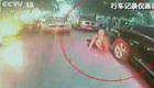 实拍:摩托车被交警查扣 司机竟烧车逃跑