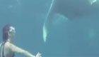 实拍女潜水员与鲸鱼嬉戏
