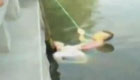 男子发现鸭子被冻湖面 跳湖破冰救援