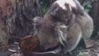 可爱考拉背着宝宝喝水