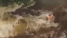 男子发现鸭子被冻湖面 跳湖破冰救援