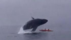 座头鲸跃水面压皮艇