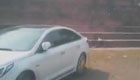 实拍轿车高速路变道与货车相撞
