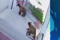 宠物狗狗勇敢击退两头熊