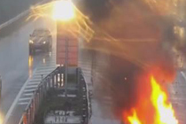监拍:货车高速路自燃 司机舍命驶离