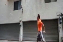 洗车刷缠绕男子不停旋转