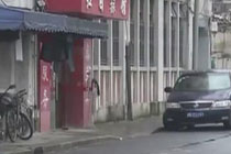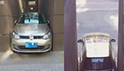 新手女司机将车停进楼缝