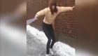 男子发现鸭子被冻湖面 跳湖破冰救援