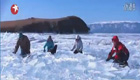 男子发现鸭子被冻湖面 跳湖破冰救援