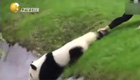 呆萌大熊猫滑雪取乐