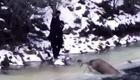 实拍雄鹿落冰水挣扎求救