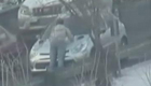 冬日暖心一幕:挖掘机替打滑轿车挖走车前冰雪