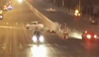 监拍女司机调头被撞不踩刹车反加速