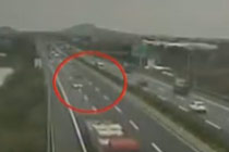 监控实拍:两车广州高速路疯狂追逐碰撞