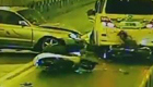轿车遭大客车撞瞬间解体
