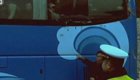 大巴车窗破损 司机用胶带行李挡风