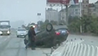 监拍:轿车翻成底朝天