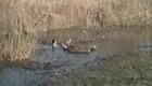 男子发现鸭子被冻湖面 跳湖破冰救援
