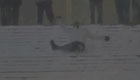 男子发现鸭子被冻湖面 跳湖破冰救援