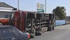 重型货车行驶中被风吹倒