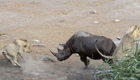 怀孕犀牛击退三只饿狮