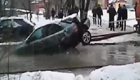 男子发现鸭子被冻湖面 跳湖破冰救援