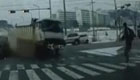 行人一秒冲刺避失控货车