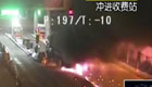 货车爆胎自燃冲向收费站