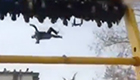 男子发现鸭子被冻湖面 跳湖破冰救援
