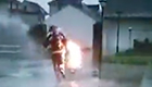 实拍消防员抱着火液化气瓶排险