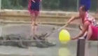 队友送出“神助攻” 逗鳄鱼小伙被吓瘫