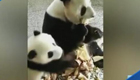 实拍:熊猫妈妈吃独食 用脚支开撒娇宝宝