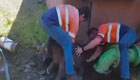 男子发现鸭子被冻湖面 跳湖破冰救援