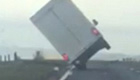 实拍重型卡车被强风吹翻