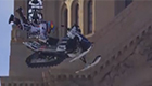 实拍雪地摩托在城市街道玩特技