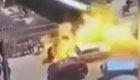 油罐车侧翻众人围观 车辆瞬间爆燃如火海