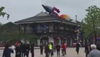 上海迪士尼小镇首露全貌 游客冒雨漫步其中