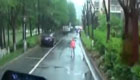 三车相撞男子跳车躲过一劫