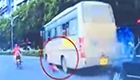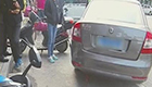 监拍轿车溜行百米撞断电动车