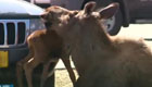 美国驼鹿在停车场淡定分娩