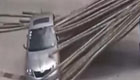 毛竹穿车 司机仅耳朵受伤