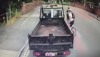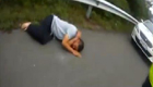 小伙狂追卡车泼水泄愤