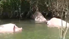 “二师兄”遭甩飞进入水塘泡澡