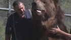 棕熊深情拥抱饲养员