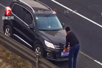 男子匝道口摘牌倒车