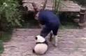大熊猫见雪撒起欢 地上打滚爬树耍杂技