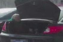 儿子车内载客谈笑 老母坐进后备箱
