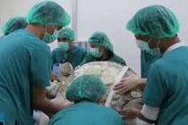 泰国海龟误吞上千枚许愿币 做手术成功取出