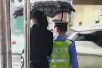 “最美撑伞姐”雨中为执勤交警默默撑伞